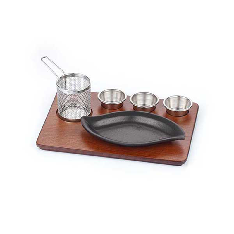 Altınbaşak MDF Fajita Presentation Set Teflon Cast Iron Leaf 36.5x27.5 cm