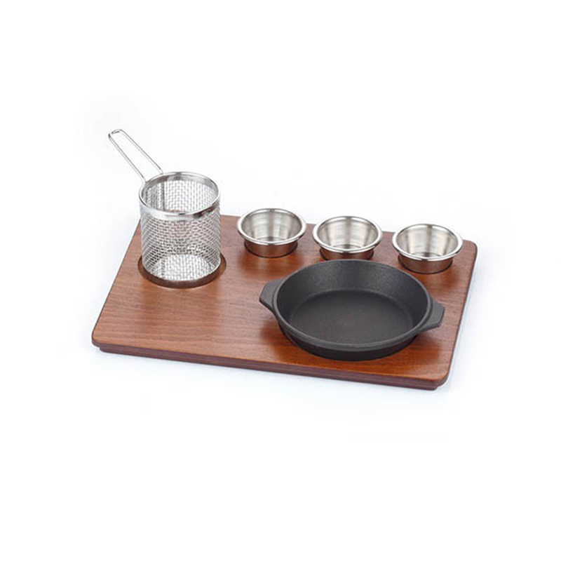 Altınbaşak MDF Fajita Presentation Set Teflon Cast Iron Round with Handles, 35x26 cm