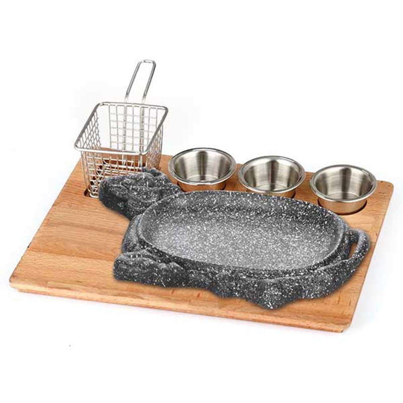 Altınbaşak Natural Massive Fajita Presentation Set Granite Cast Iron Buffalo  35x26 cm