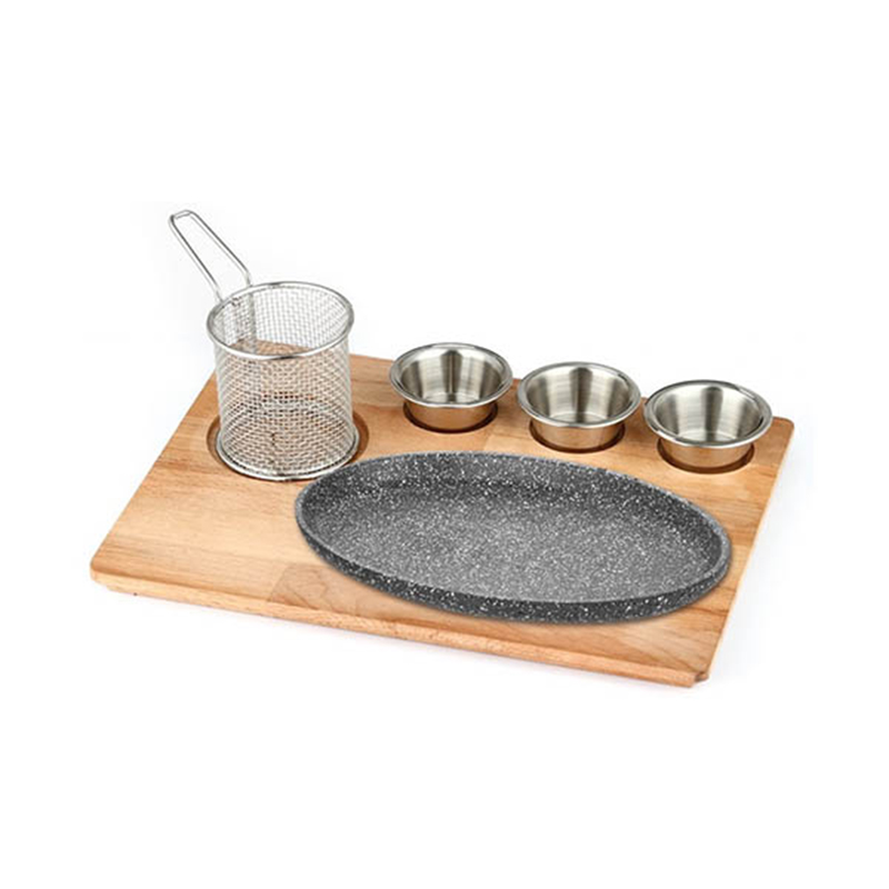 Altınbaşak Natural Massive Fajita Presentation Set Granite Cast Iron Oval Deep, 35x26 cm