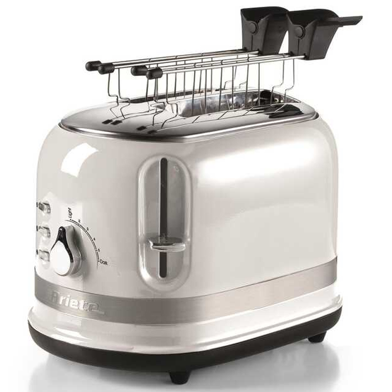 Notify me when its in stockAriete's Moderna bread toaster is equipped to perfectly toast bread or filled sandwiches and can be used without tongs thanks to the automatic removal of slices. It is possible to toast 2 slices of bread simultaneously and select 6 different browning levels. It is equipped with 3 functions to choose the crispiness degree of your toasted bread. Cooking, reheating, and defrosting.