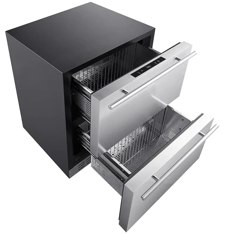 Notify me when its in stockDesigned for professional kitchens and modern home users, the BUF113-DS is a premium undercounter built-in freezer that combines powerful freezing performance with a sleek double drawer design, with a capacity of 113 liters and a compact structure. A single zone cooling system that offers a wide temperature range between -22°C and +10°C ensures long-term safe preservation of frozen foods, ideal conditions for rapidly freezing products, and proper storage of special contents requiring low temperatures. The No-Frost evaporator technology completely prevents icing, while the internal fan distributes the cold air evenly to every point inside the drawer and creates a stable heat balance. The 304 stainless steel double drawer structure increases durability, while the low noise level of 46 dB provides a comfortable user experience in any environment. The soft LED interior lighting makes the inside of the drawer modern and visible. The BUF113-DS is a high-end undercounter freezer solution that offers high performance, durability, and modern design together for home kitchens, restaurants, hotels, and professional businesses.