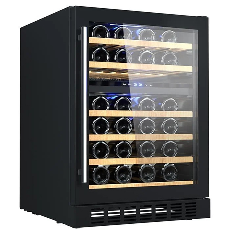 Notify me when its in stockDesigned for wine collectors and professional use, the BUW46-BG2 offers a capacity of 46 bottles (calculated based on 750 ml standard wine bottles) and a compact structure, providing high performance in both home and commercial spaces as a double compartment wine cabinet. The Dual Zone system providing precise temperature control between 5–18°C allows you to keep your red and white wines at ideal serving or storage temperatures. The UV-protected glass door and 304 stainless steel handle minimize aroma loss from light sources while enhancing durability. Compressor technology that minimizes vibration and a low noise level of 42 dB offers a comfortable usage experience in any environment. Soft LED interior lighting and non-slip wooden shelves display your collection in an aesthetic and organized manner. The BUW46-BG2 is a modern and reliable storage solution for both professional businesses and private collection owners with its undercounter compatibility, powerful cooling capacity, and premium material quality.