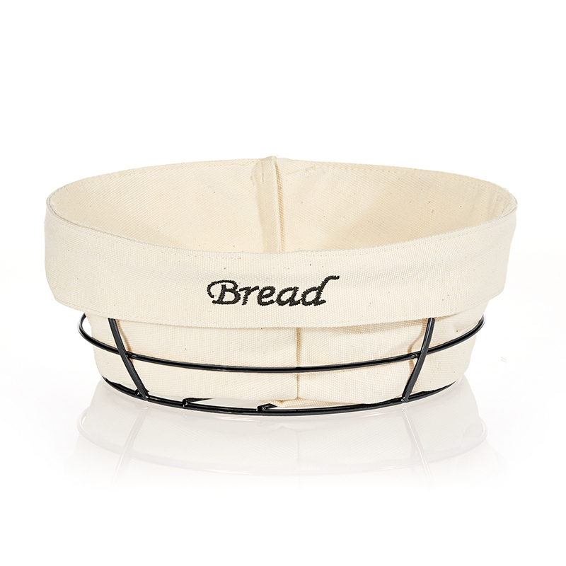 Biradlı Round Bread Basket, White Cloth, 23x23x8.5 cm, Black