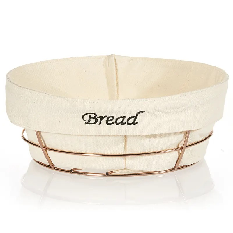 Biradlı Round Bread Basket, With White Cloth, 23x23x8.5 cm, Copper