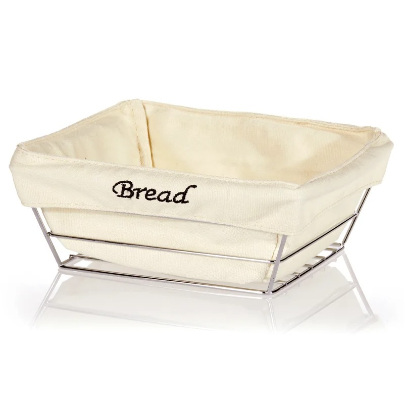 Biradlı Square Bread Basket, White Cloth, 22x22x9 cm