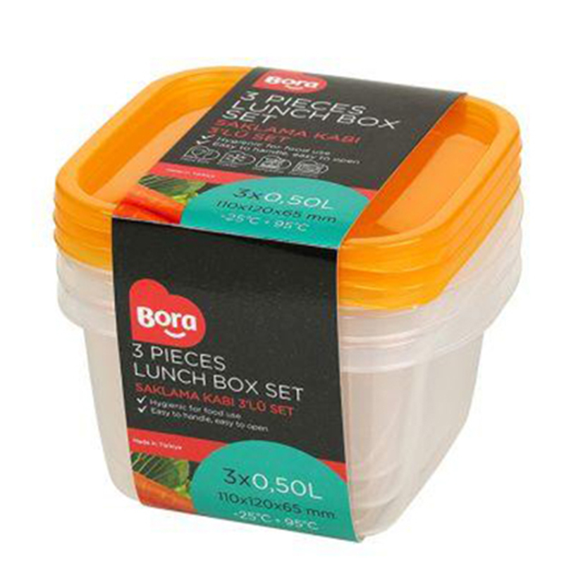 Bora Plastik Storage Container, Square, Set of 3, 500 ml, BO546
