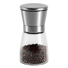 Biradlı Tuz Karabiber Değirmeni, Cam, 13 cm, Çelik Başlıklı