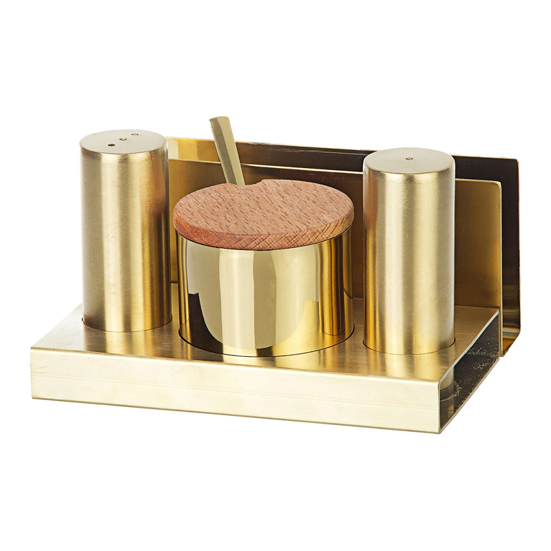 Groovy Ahşap Standlı Yuvarlak 3'lü Tuzluk Takımı, Parlak-Mat