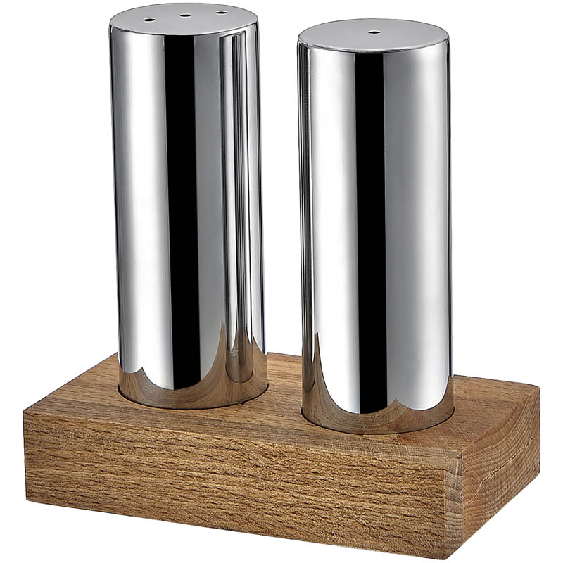 Groovy Ahşap Standlı Yuvarlak 3'lü Tuzluk Takımı, Parlak-Mat