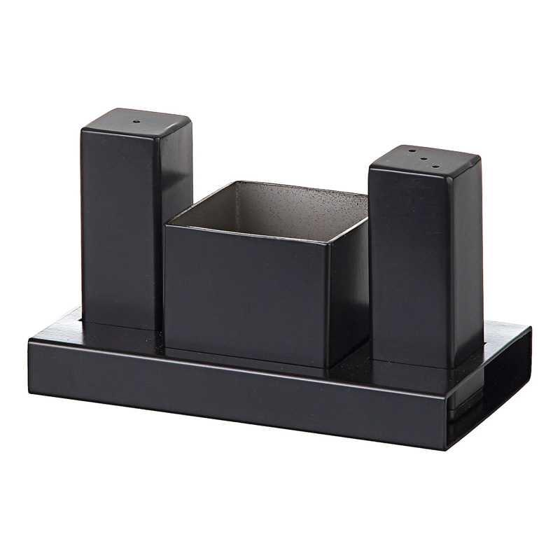 Groovy Set of 3 Square Salt and Spice Holder, Black
