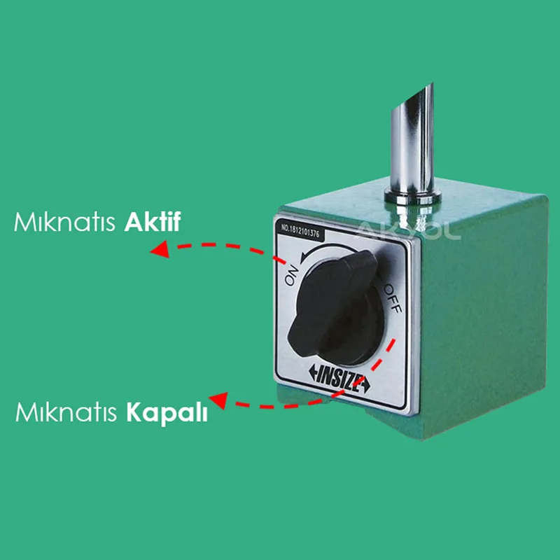 ON/OFF manyetik anahtar ile tabandaki mıknatıs aktif/pasif hale getirilebilir
