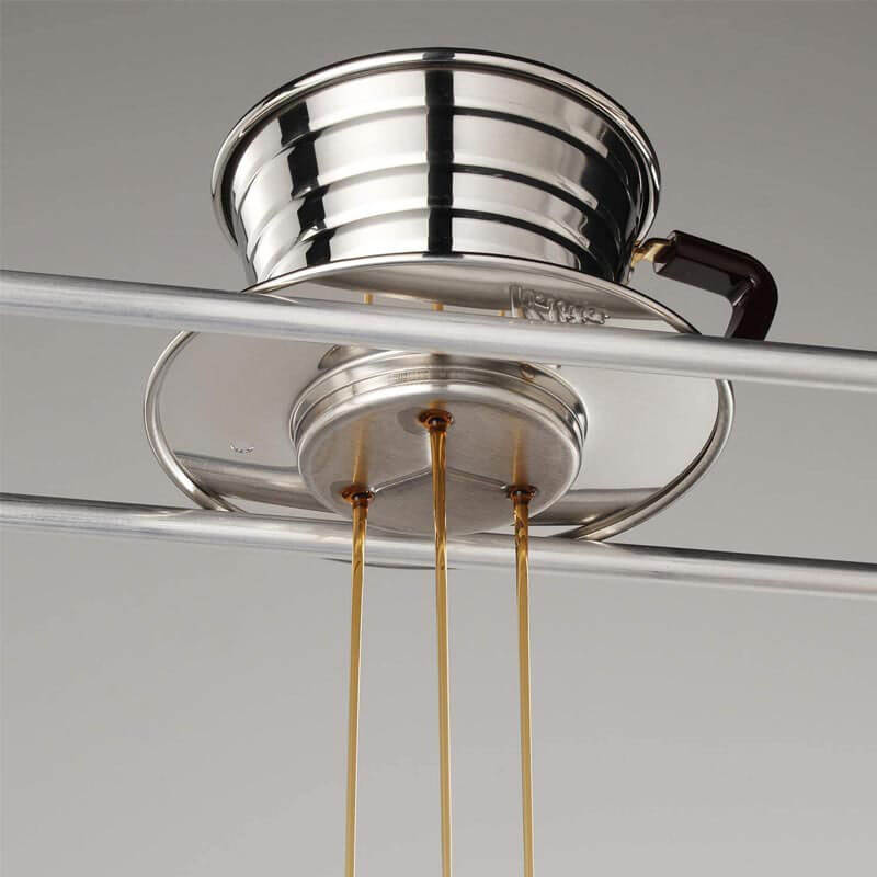 It has three holes and a flat base. The contact between the dripper and the filter is kept to a minimum to promote smooth coffee extraction. The Wave dripper allows both beginners and professionals to make a delicious cup of coffee.