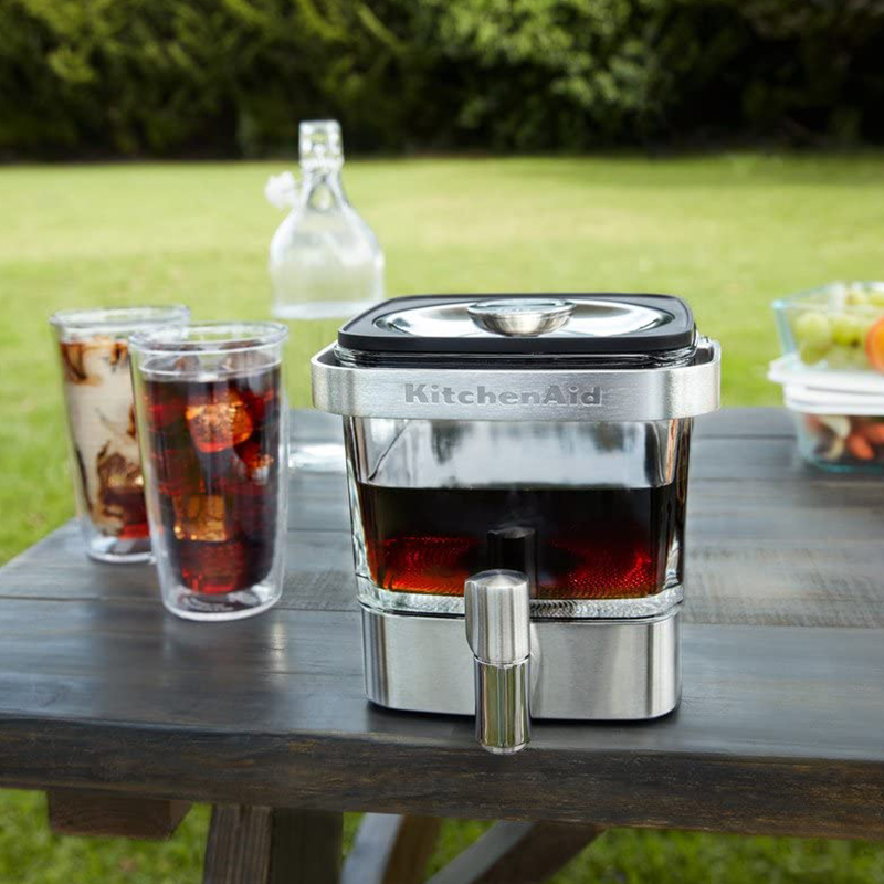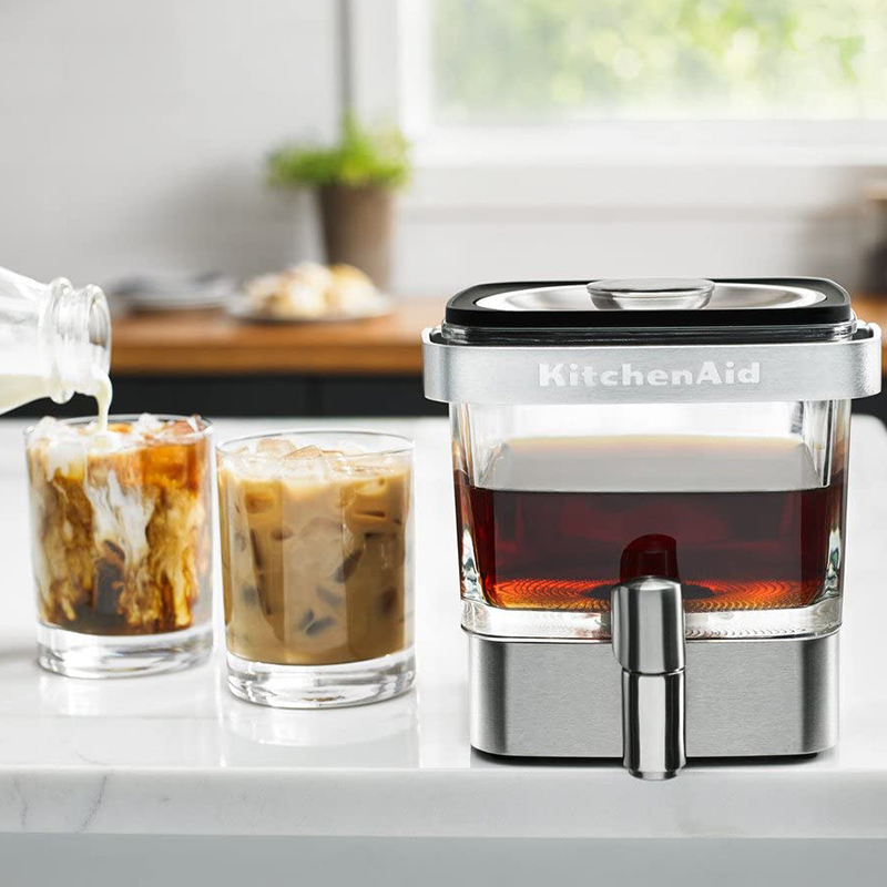 Cold Brew essence can even be obtained at home. For this purpose, KitchenAid has prepared an elegant and comfortable product made of the best glass and steel. It is designed to provide the right amount of essence that can be easily served with a thin tap directly from the refrigerator shelf, and to fit in the refrigerator shelf.