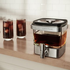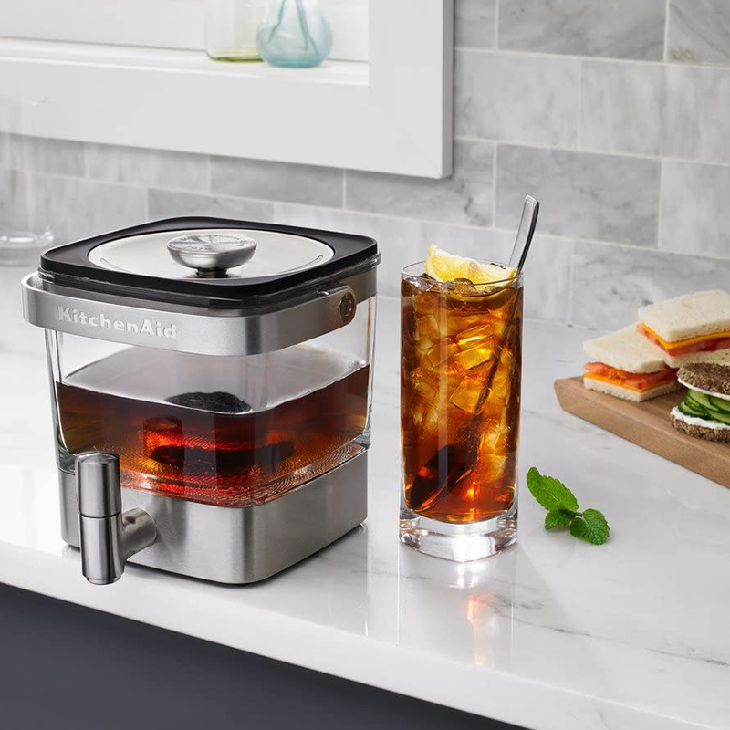 Cold Brew essence can even be obtained at home. For this purpose, KitchenAid has prepared an elegant and comfortable product made of the best glass and steel. It is designed to provide the right amount of essence that can be easily served with a thin tap directly from the refrigerator shelf, and to fit in the refrigerator shelf.