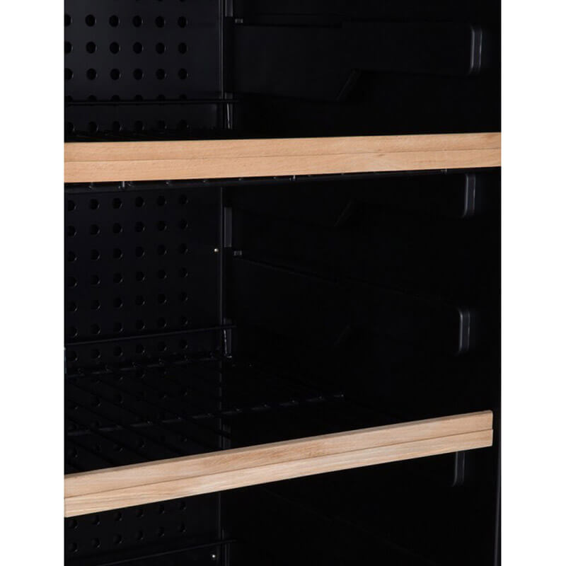 Şarap dolabınız içerisindeki nemin doğru miktarını düzenli olarak salmak için lav taşları kullanılmaktadır. Aynı zamanda, üründe yerleşik bulunan sensörler nem seviyesini kolaylıkla takip etmenizi ve kontrol etmenize imkan tanır. Dijital termometre ve nem ölçer şarap dolabınızı istediğiniz ölçü ve ayarda kullanım kolaylığı sağlar.