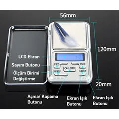 Bu hassas dijital cep terazisine harici olarak belirli ağırlıklar ile kalibrasyon yapılabilmektedir.