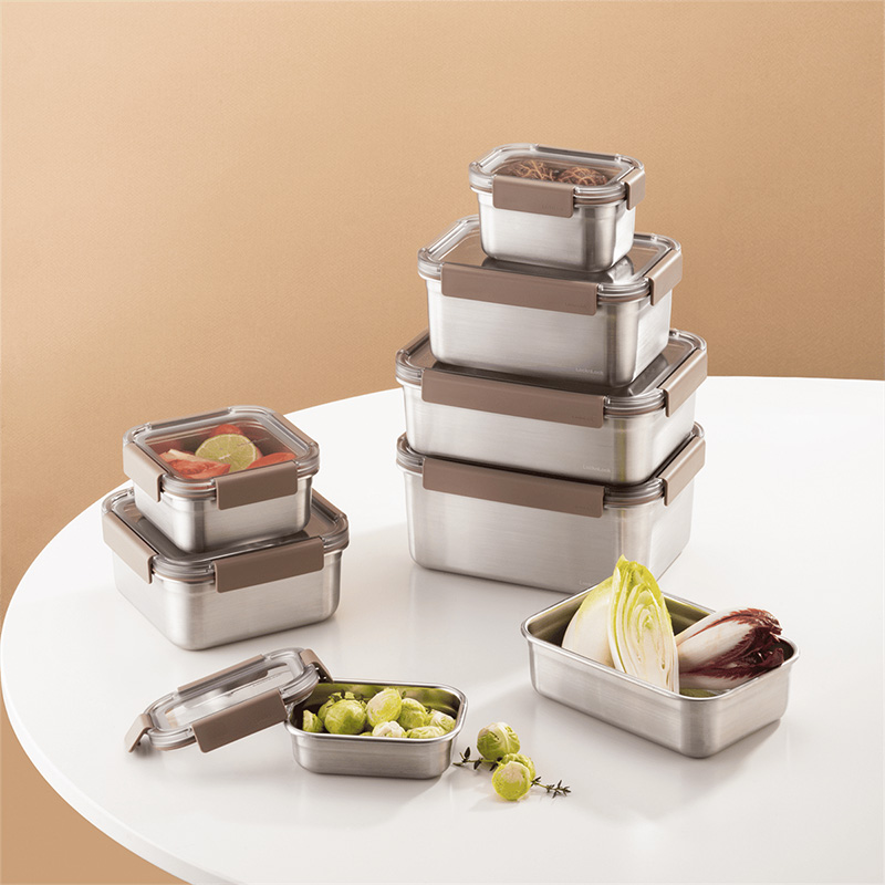 LocknLock Paslanmaz Çelik Fırın ve Saklama Kabı, Dörtgen Kilitli 1 Lt, Kahverengi