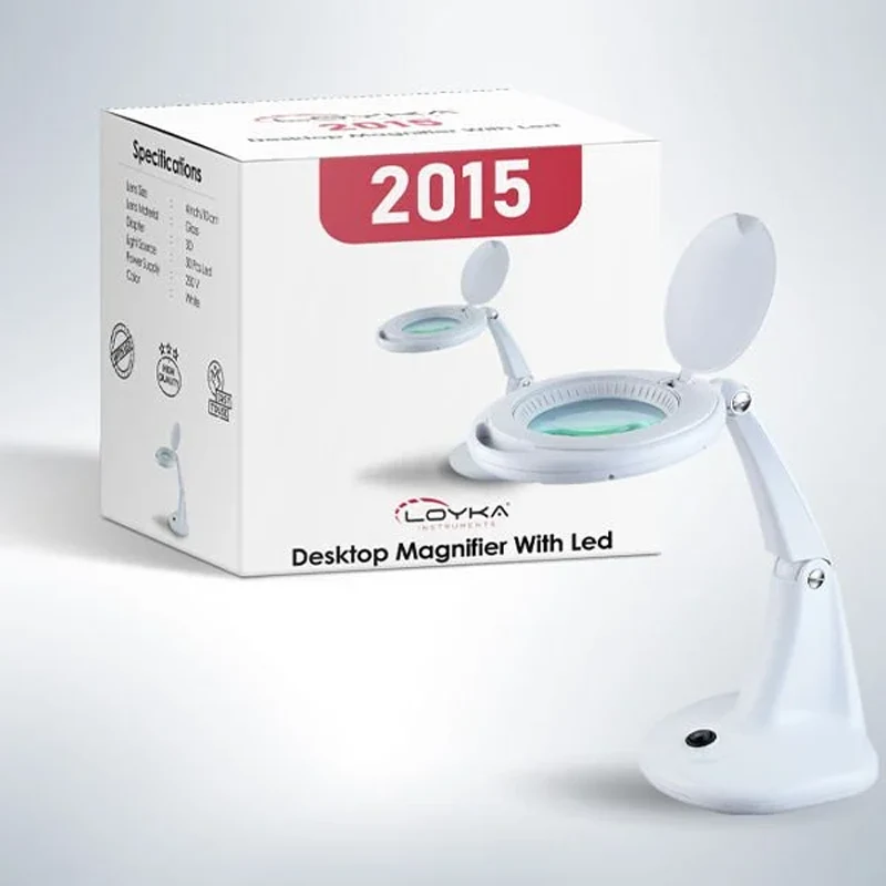 Notify me when its in stockLoyka 2015, has a magnification power of 5 diopters (approximately 2.25X), with glass lens and 30 LED illumination is a tabletop magnifier.