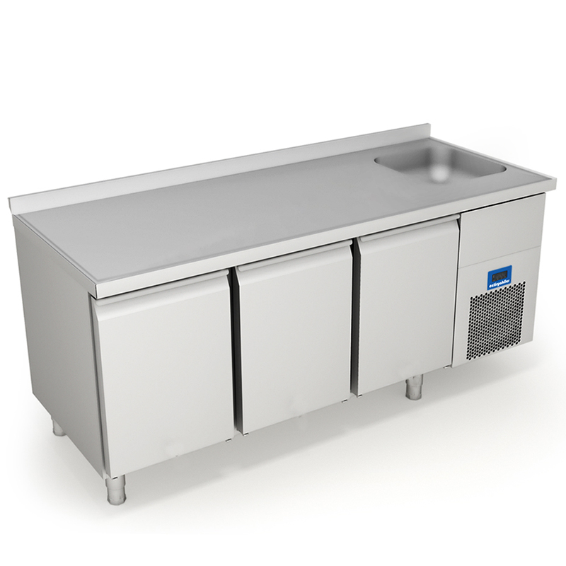GN 1/1 raflı Üç kapılı tezgah tipi buzdolabı