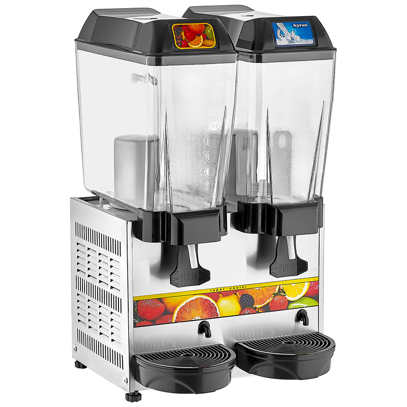 Remta ST13 Double Sherbet and Buttermilk Cooling Machine, 1 with Fountain, 1 with Mixer, 20+20 Liter Capacity, Silver
