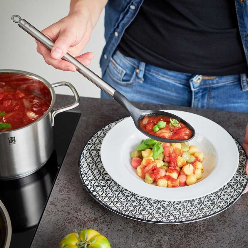 • Pratik dökme kaşığı ile az miktarda tuzlu veya tatlı soslar kolayca porsiyonlanabilir ve damlatılmadan servis edilebilir.