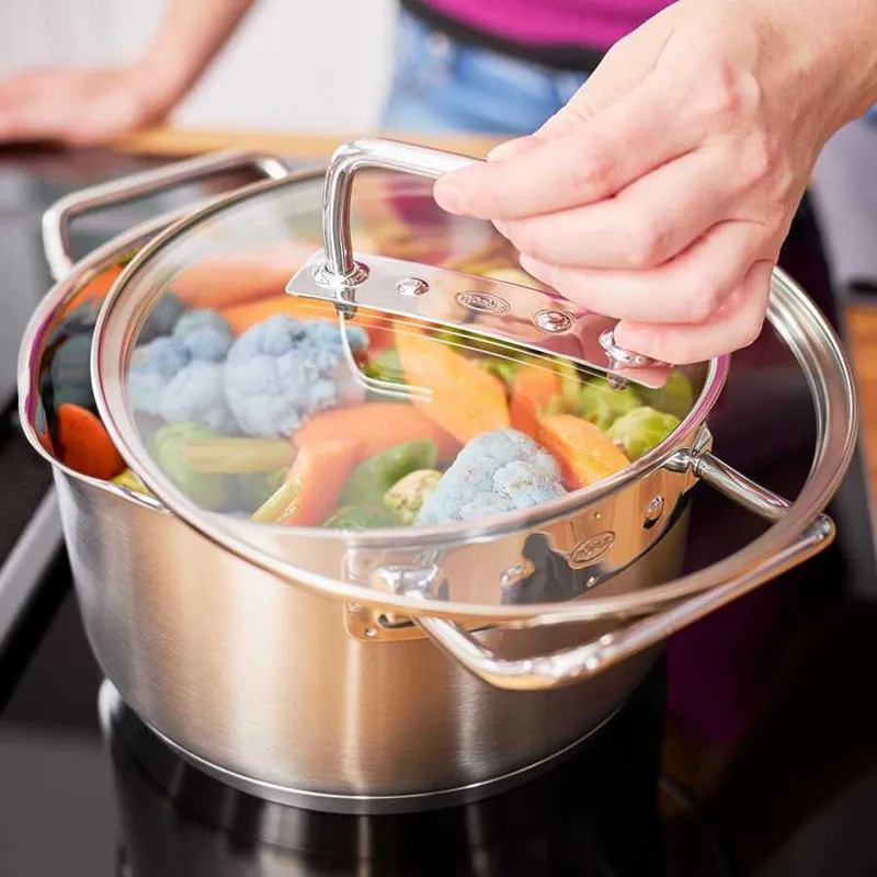 Sertleştirilmiş camdan yapılmış tencere kapak, tencerenin içini ve pişen yemeği görmenizi sağlar.
