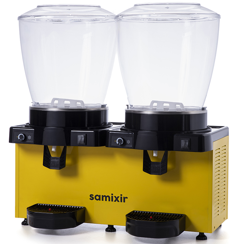 Samixir MM44 Panoramik Twin Soğuk İçecek Dispenseri, 22+22 Lt, Çift Karıştırıcılı, Sarı