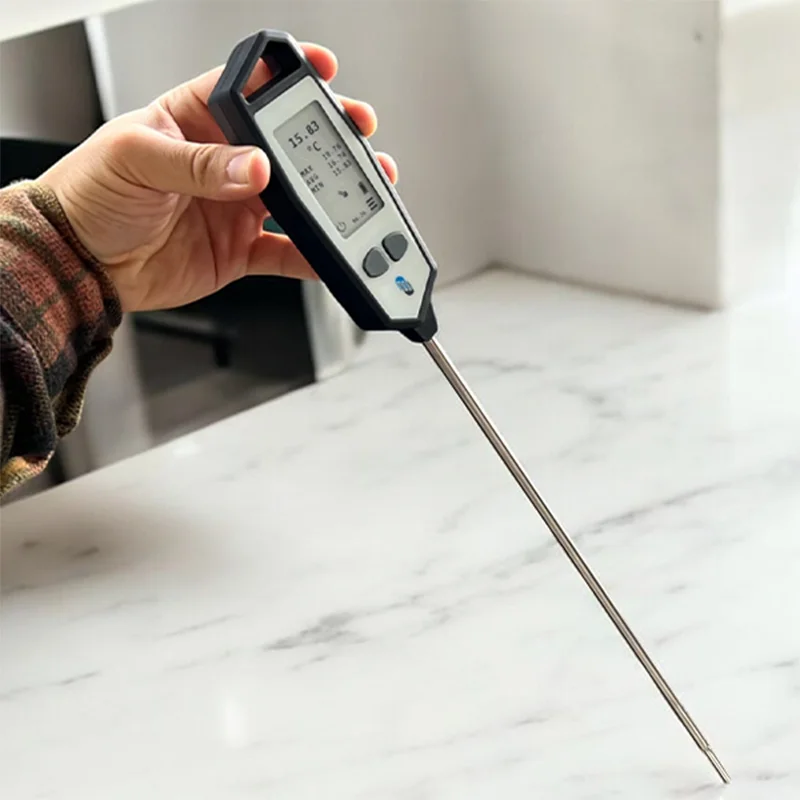 Bu çok hassas termometrenin 315 mm uzunluğunda ekstra uzun bir probu vardır.