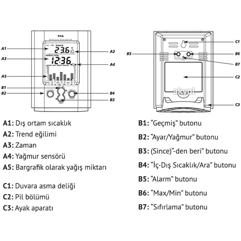 Yağmur Alarmı: Aktif edildiğinde yağmur yağdığında cihaz bip sesi ile uyarı verir.
