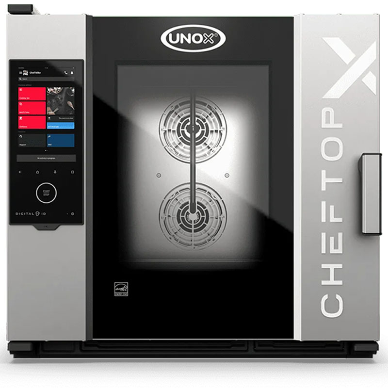 Notify me when its in stockA professional high-performance combi oven designed to perfectly execute the baking process for all types of gastronomy, pastries, and dough-based products, equipped with the latest operating system and smart technology. Thanks to the recirculating automatic washing system, it is ENERGY STAR® certified for low consumption performance and waste reduction. CHEFTOP-X™ features a cooking chamber molded from 316L steel and an integrated RO.Care water filtration system that eliminates the need for external treatment. It is equipped with an integrated microphone for voice control and interaction with UNOX Corporate Chefs to receive direct cooking assistance via the interactive panel. The advanced Digital.ID™ operating system allows users to save all their favorite settings in their account and transfer them from one oven to another within seconds. With the Digital.ID™ app, the oven can be controlled from smartphones and accounts can be customized.