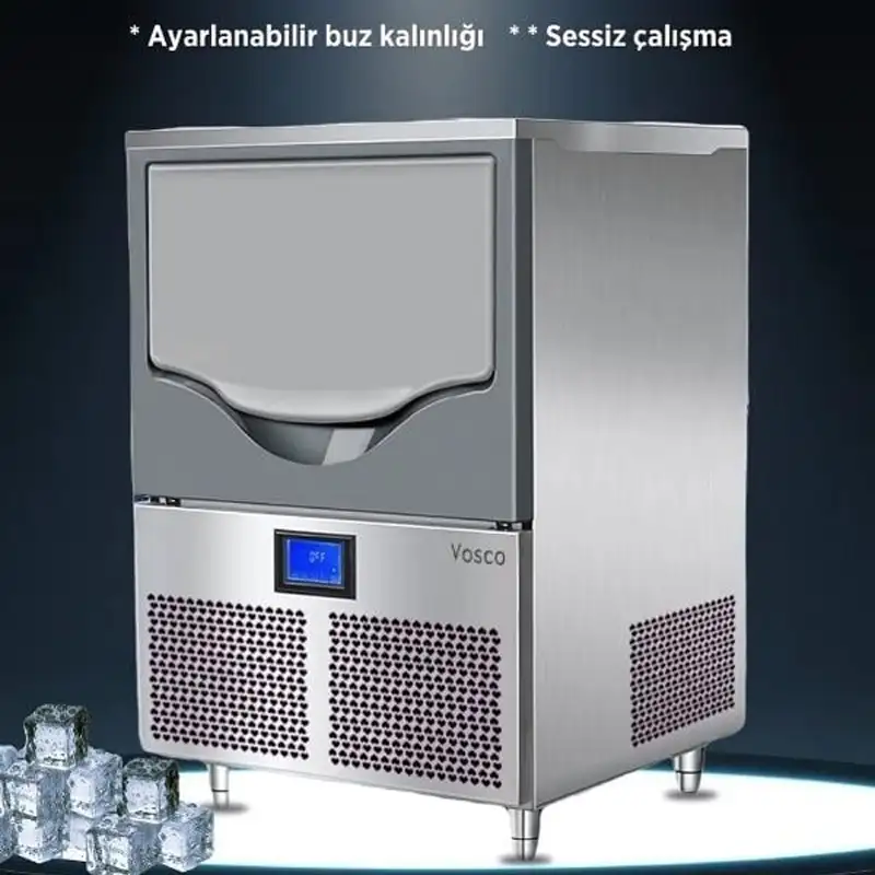 Vosco VSC-40C Buz Makinesi, günlük 40 kg küp buz üretim kapasitesiyle küçük ve orta ölçekli işletmeler için ideal bir çözümdür.