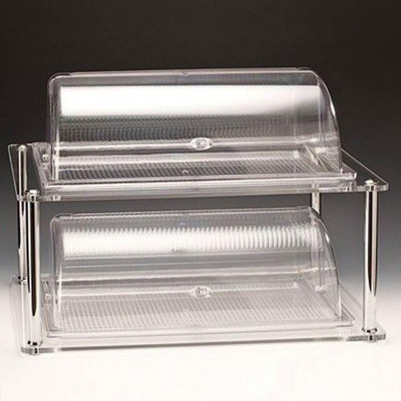Zicco 2 Tier Acrylic Display Stand, Polycarbonate Coated, Rolltop Lid, 44x64x49 cm